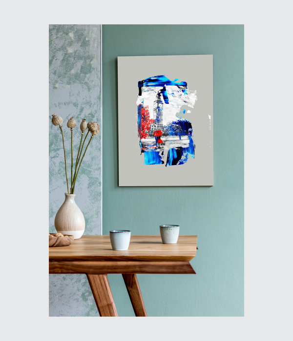This striking canvas features the iconic Big Ben tower framed within bold, expressive swipes of cobalt blue and textured white.The mix of traditional architecture and contemporary abstract brushwork creates a unique, gallery-style aesthetic for any space.Bring a touch of European charm to your study, library, or a modern living room seating area. ☔
