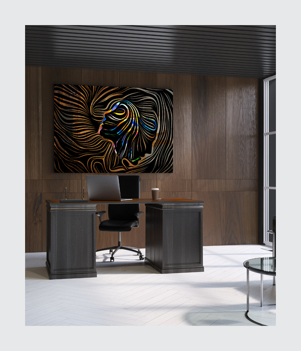 Bring a contemporary edge to your home with Neural Flow. This high-contrast abstract painting merges industrial textures with a digital-spectrum aesthetic. The sweeping, topographical lines draw the eye toward a vibrant, multi-colored profile, representing the intersection of logic and creativity. Printed on premium canvas with archival inks, this wall decor is designed to spark conversation and add a sophisticated, artistic energy to any modern living room or office.