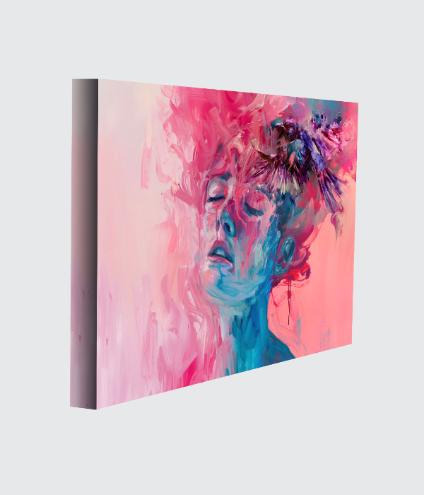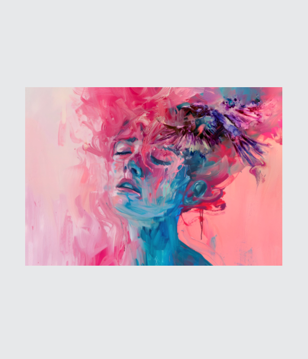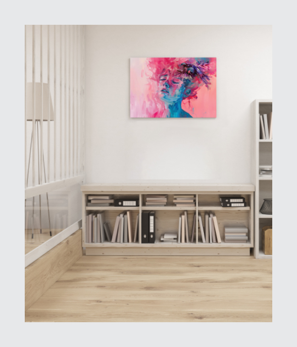 his mesmerizing canvas painting reflects beauty, emotion, and imagination through a dreamy feminine portrait wrapped in soft pink and blue tones. 🌸✨ The fluid brushstrokes and expressive textures create a sense of calm, freedom, and artistic depth.