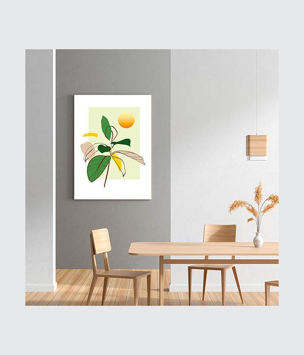 This elegant piece blends fine-line botanical sketches with soft, organic shapes and a glowing sun motif. Featuring a soothing palette of sage green, mustard yellow, and earth tones, it brings a calm, natural aesthetic to any modern interior.🌿 Ideal for creating a serene atmosphere in a bedroom, yoga nook, or a cozy reading corner.